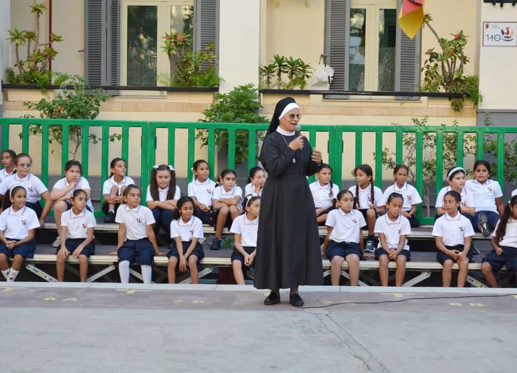 Am Montag, den 25. August wurden unsere Vorschülerinnen in ihren neuen Schuluniformen eingeschult. Während der Feier hielten Sr. Antonia, Sr. Klara und auch Herr Münstermann, der Grundschulleiter ihre Reden.